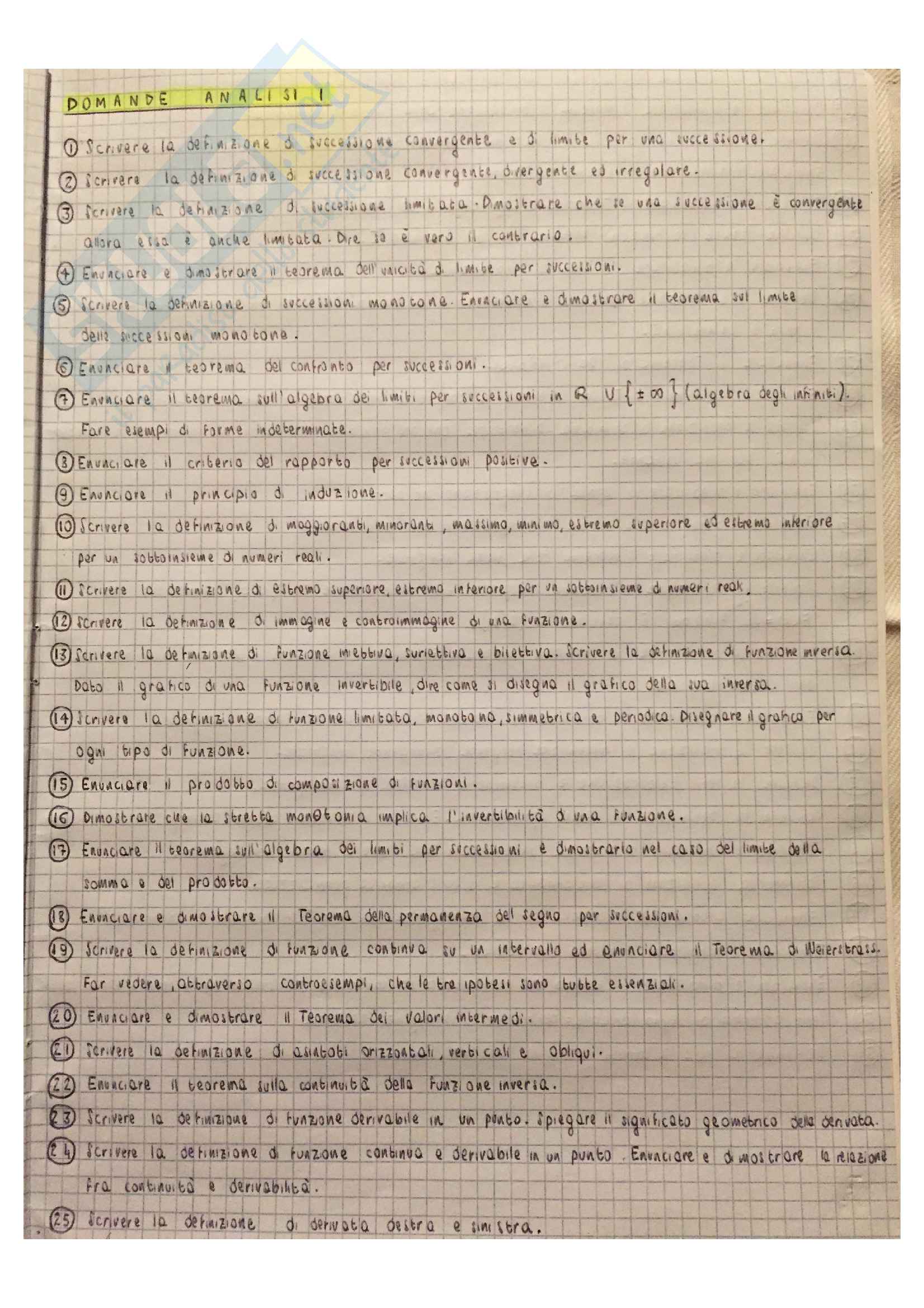 Domande Di Analisi Matematica 1. Appunti di analisi matematica 1. Analisi matematica i esame orale.